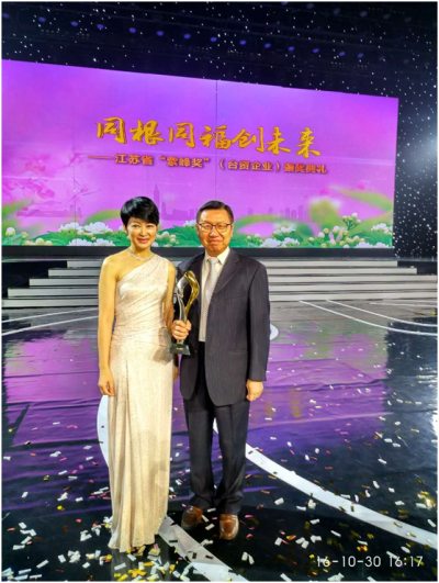 经国务院批准,江苏省政府专门设立目前大陆各省市中首个面向台资企业的表彰奖项"紫峰奖"。该奖根据江苏台资企业特点,聘请了专门机构制定科学有效的评价体系,设立了五大类别奖项,对扎根江苏、表现突出的台资企业进行了表彰,继续支持台资企业转型升级、做大做强,进一步扩大深化苏台各领域交流合作,努力让合作成果惠及两地人民。可成科技等10家企业荣获"纳税贡献领军企业"奖,仁宝电脑集团等10家企业荣获"出口贸易领军企业"奖,大陆首家台资法人银行永丰银行(中国)有限公司等4家企业荣获"现代服务业领军企业"奖,以海门米兰官方站网页版-米兰MiLan(中国)药业有限公司领衔的30家企业荣获"成长型企业"奖,昆山超绿光电有限公司等10家企业荣获"青年创业企业"奖。