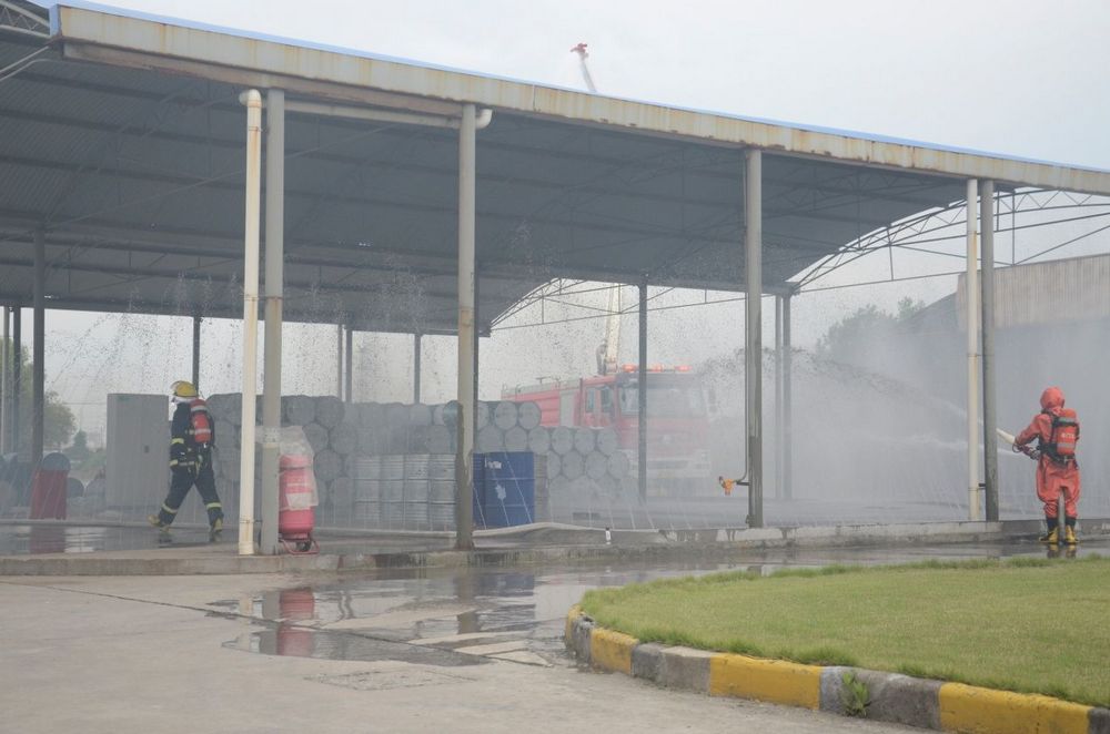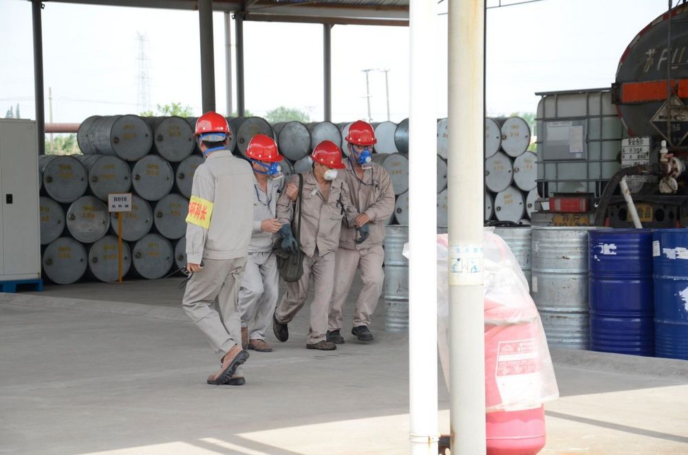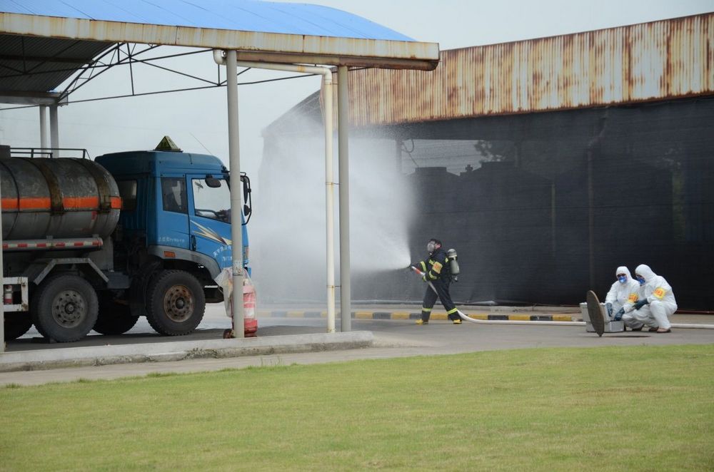 公司启动应急预案后,防化抢险组第一个冲到现场