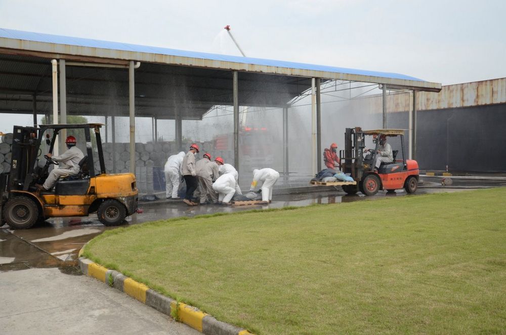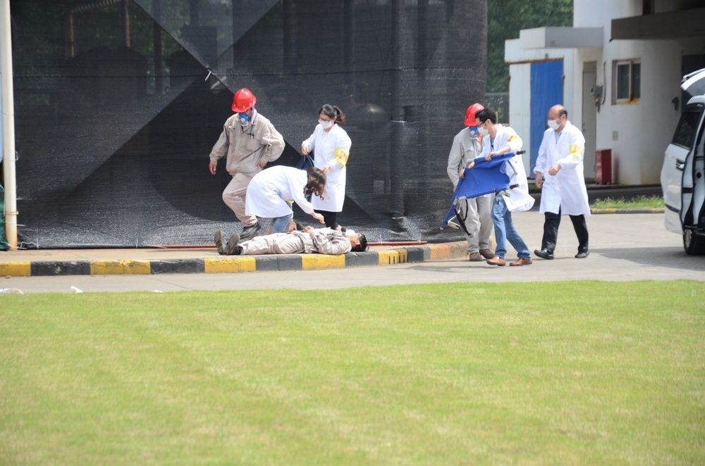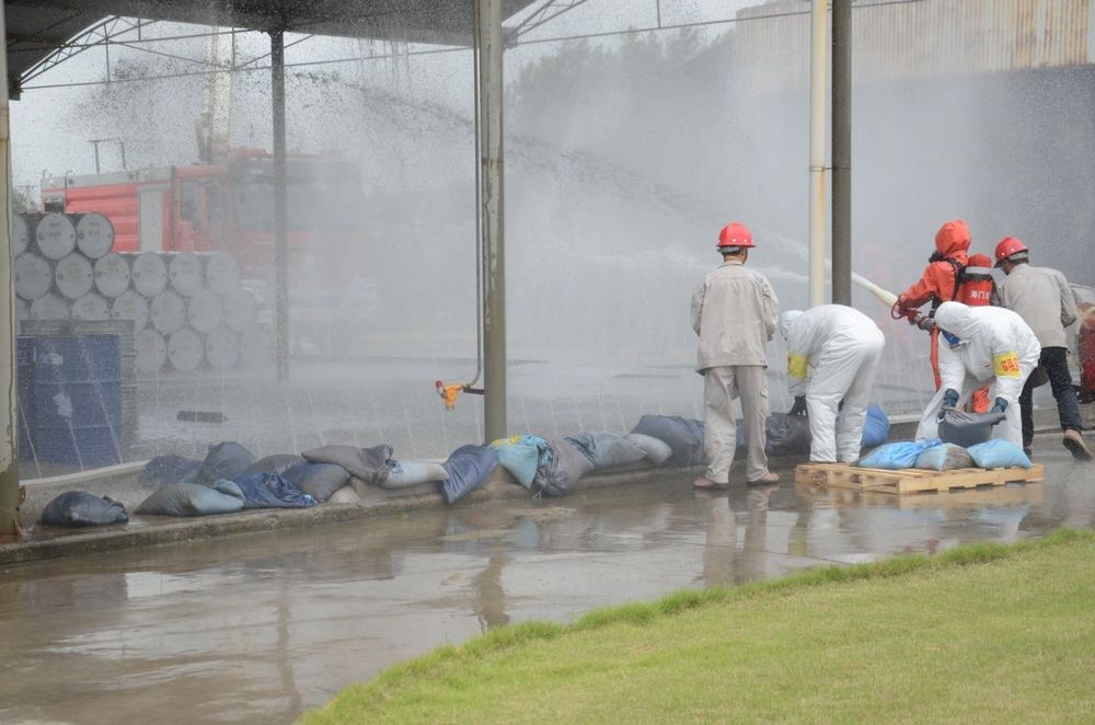 环境应急组的人员迅速要换阀门,让事故水流入事故应急池