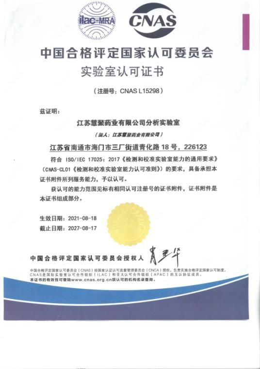 2021年8月18日,江苏米兰官方站网页版-米兰MiLan(中国)药业有限公司通过审核,取得CNAS认证证书。此次获得CNAS审核,既是对分析实验室的技术实力及体系管理实力的认可,也是米兰官方站网页版-米兰MiLan(中国)药业建设国际一流实验室道路上的关键一步。面向未来,分析实验室将继续秉承“数据准确、运转高效、行为公正、态度严谨”的质量方针,严格按照法规要求、体系要求、国际标准、国内标准认真控制各检测环节,发挥各职能部门功能,完成各项检测任务,以专业的技术支持,确保检测报告的准确及时,持续提升客户满意度。
